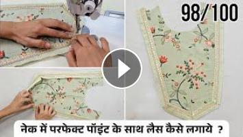 नेक पर लेस लगाते समय परफेक्ट पॉइंट बनाना सबसे मुश्किल होता है। इस वीडियो में आप सीखेंगे: